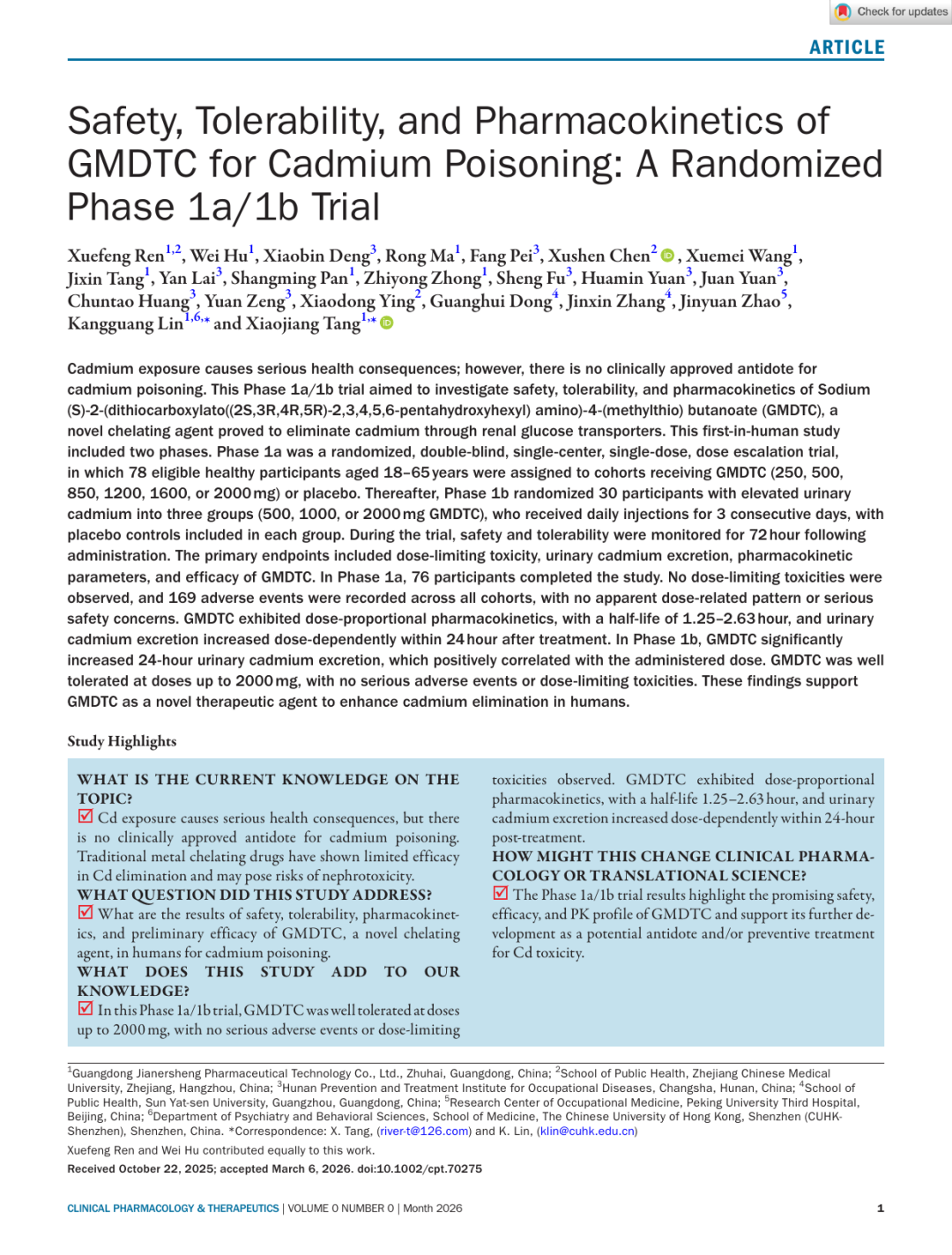 2025年7月1日,广东健尔圣医药科技有限公司自主研发的特效驱镉剂GMDTC的二期临床研究(IIa)发布会